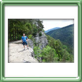 SZLAK : Podlesok - Przełom Hornatu (szlak niebieski) - Klastorska Dolina (szlak zielony) - Klastorisko - Biały potok (szlak zółty) - Sokolia Dolina - Podlesok (szlak zielony, zółty, niebieski, zółty i czerwony)